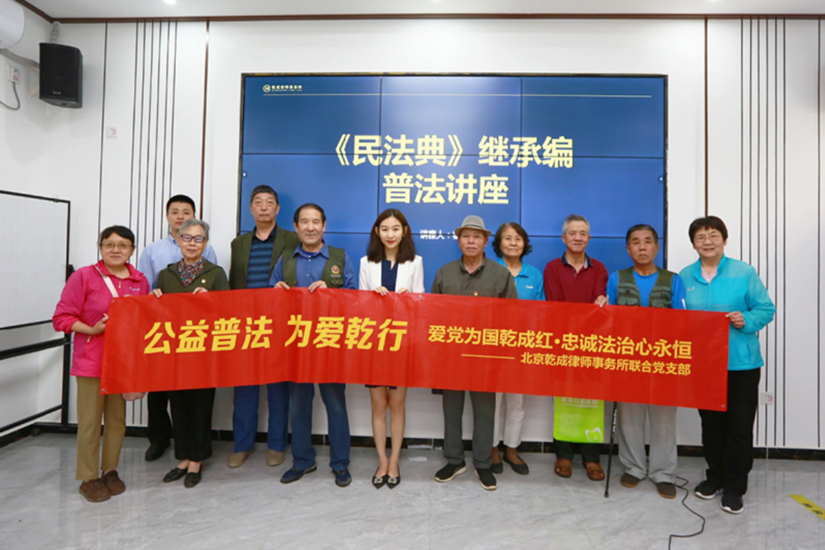 作為(wei) 一家卓越的新生代律師事務所,乾成始終堅持“政治引領、黨(dang) 建先行”,以打造“乾成紅”黨(dang) 建品牌為(wei) 核心,“黨(dang) 建+”為(wei) 抓手,深化法律服務創新,通過專(zhuan) 業(ye) 價(jia) 值推動社會(hui) 公益事業(ye) ,打造乾成特色的公益法律服務。